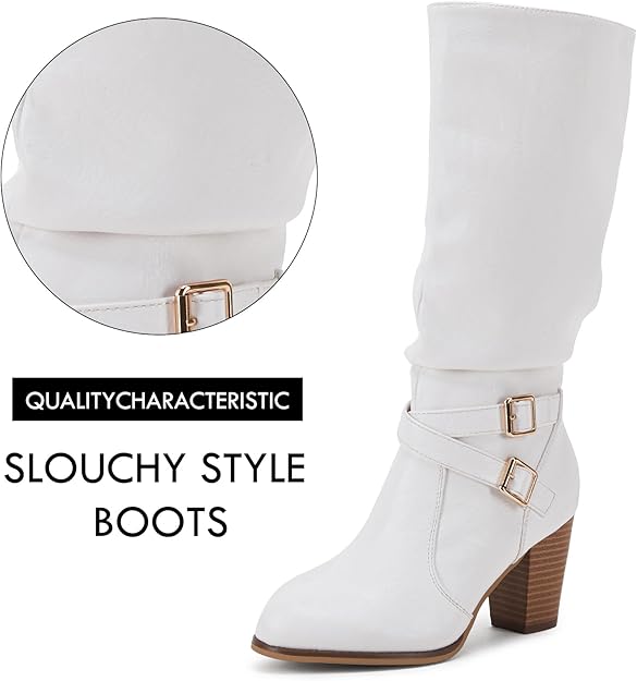 Women S Mid Knee High Boots Chunky Heels Casual Metal Buckle Side Zipper Fashion Winter Shoes