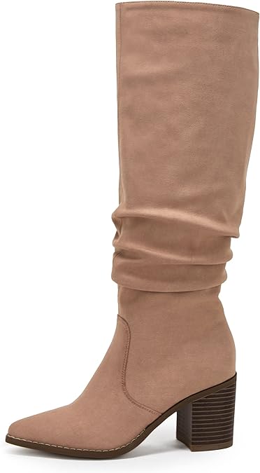 Women S Pointed Toe Mid Heel Side Zipper Knee High Boots