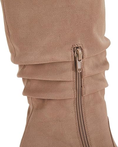 Material: Faux suede, the fabric has a little stretch, soft warm inner lining, the boot will not fall off and comfortable to wear.