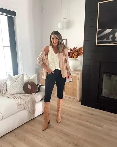 / Women S Pointed Toe Mid Heel Side Zipper Knee High Boots