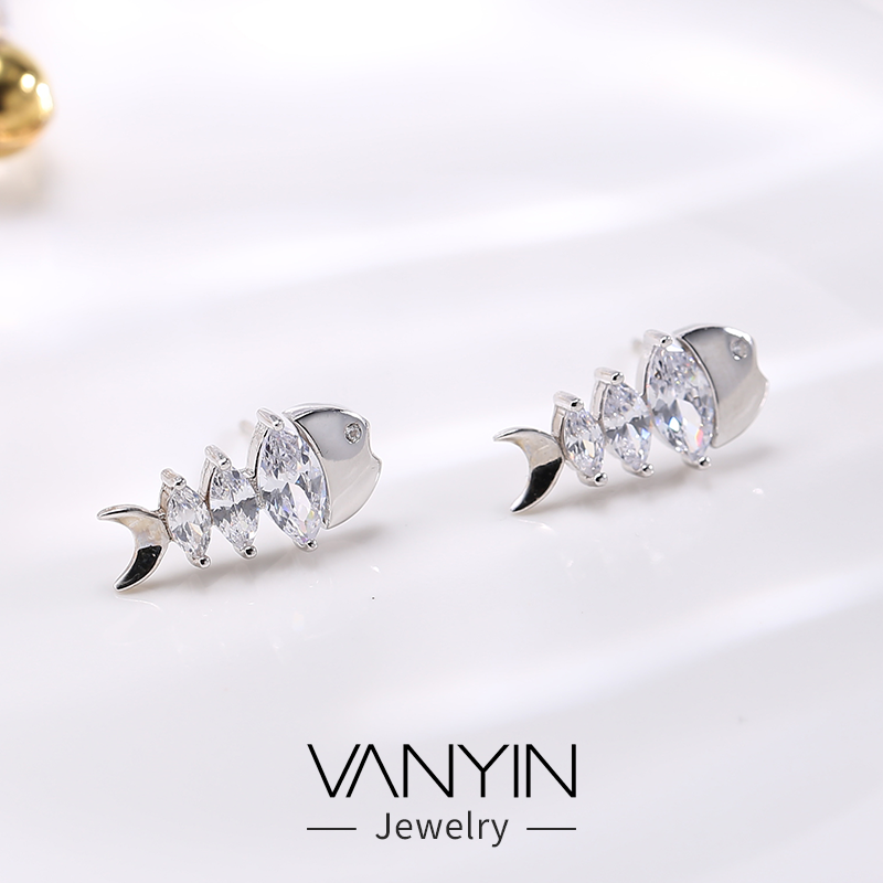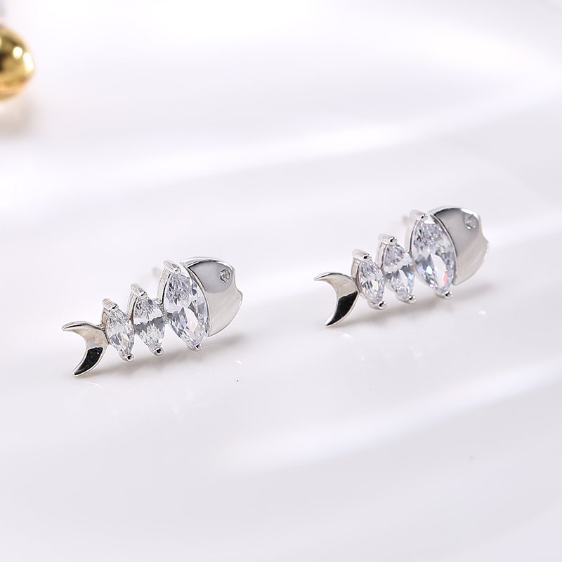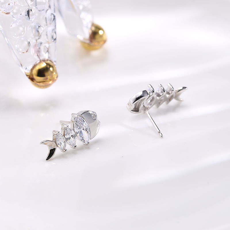 Fishbone Stud Earrings S925 Sterling Silver Creative B015