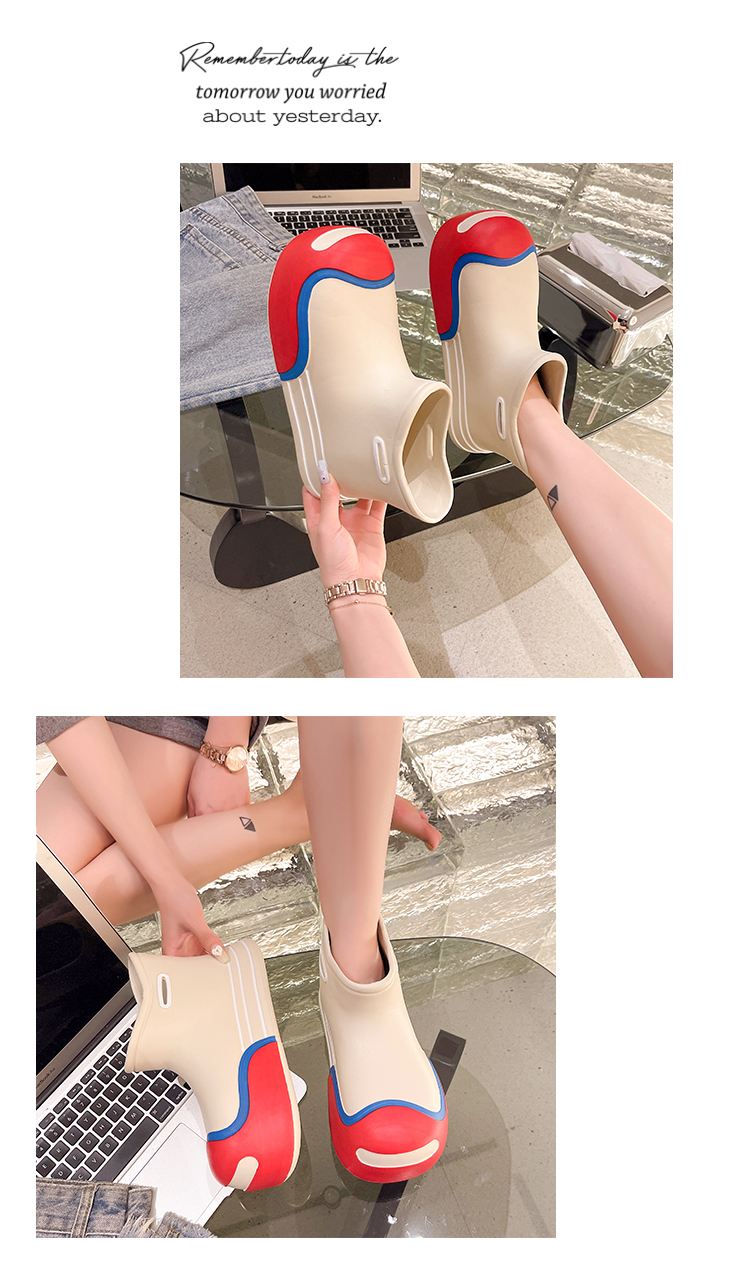 • 2024 Spring And Summer Rain Boots Women's Fashionable Outdoor Wear Adult Short-Barrel Thick-Soled Waterproof Non-Slip Shallow-Mouth Rain Boots