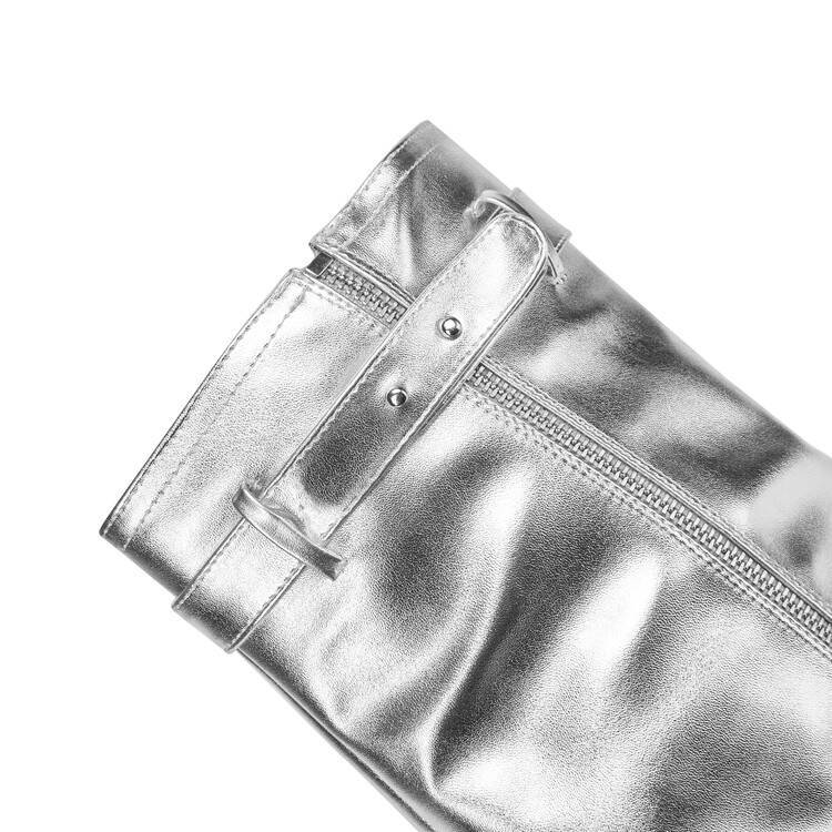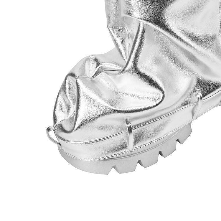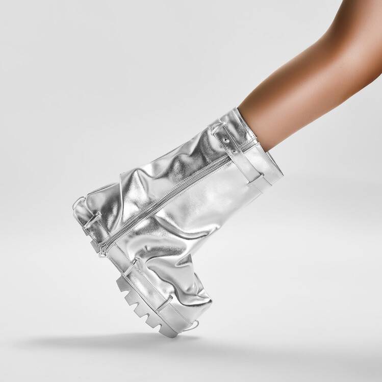 • 2024 New Niche Fashion Metal Punk Zipper Belt Buckle Thick Bottom Heightening Boots Mid-Tube Boots Fashion Boots Women's Shoes