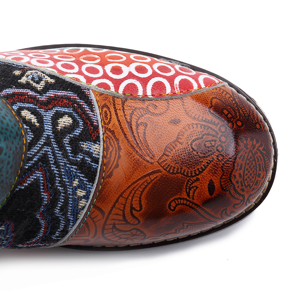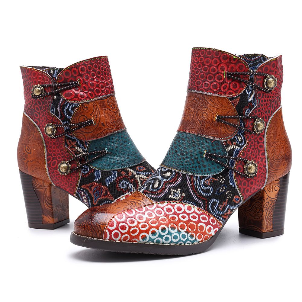 • 2024 New Four Seasons Fashion Genuine Leather Stitching Women's Shoes Jacquard Craft Fashionable And Comfortable Thick Heel Short Women's Boots