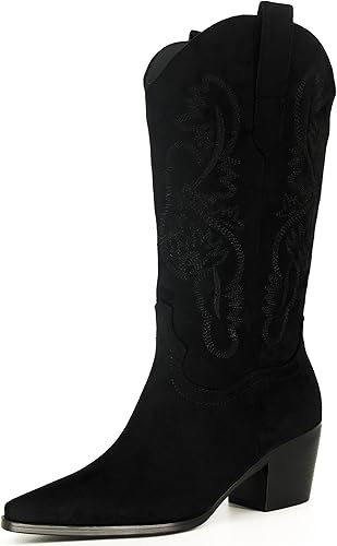 2024cowgirl Boots Women Knee High Boots Pointed Toe And Block Heel Cowboy Suede Boots With Embroidered