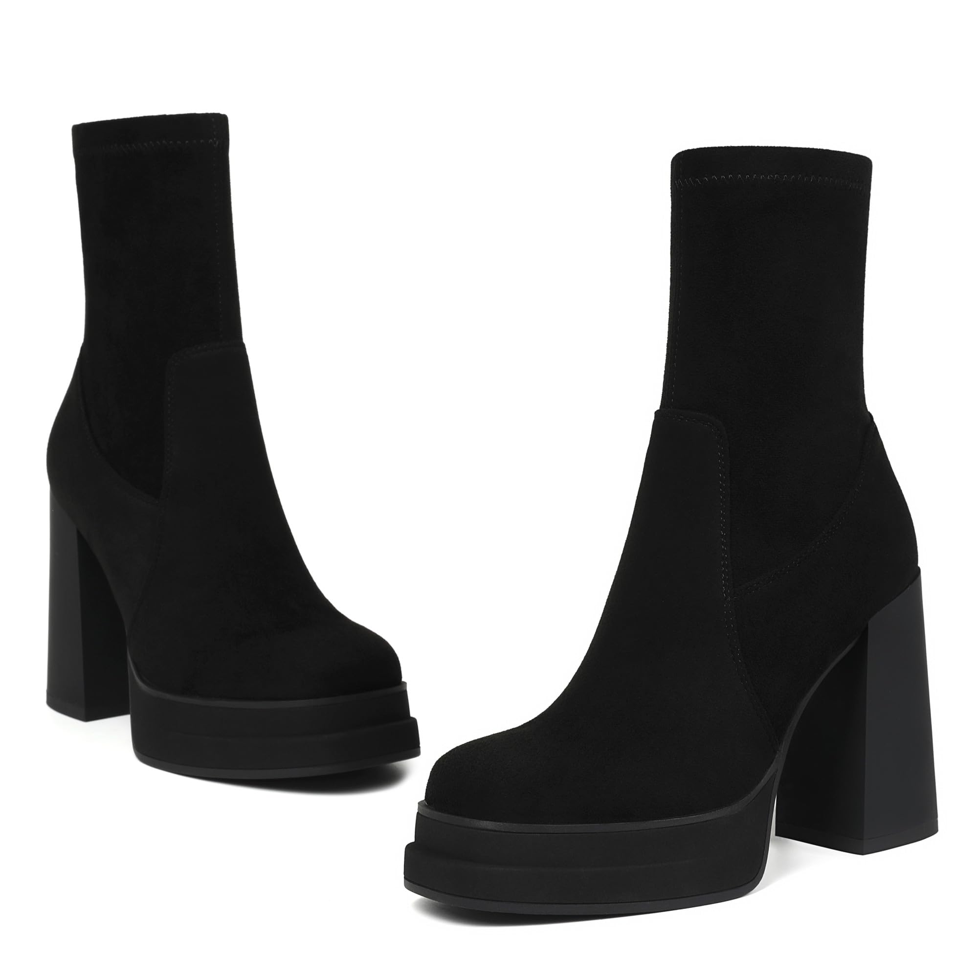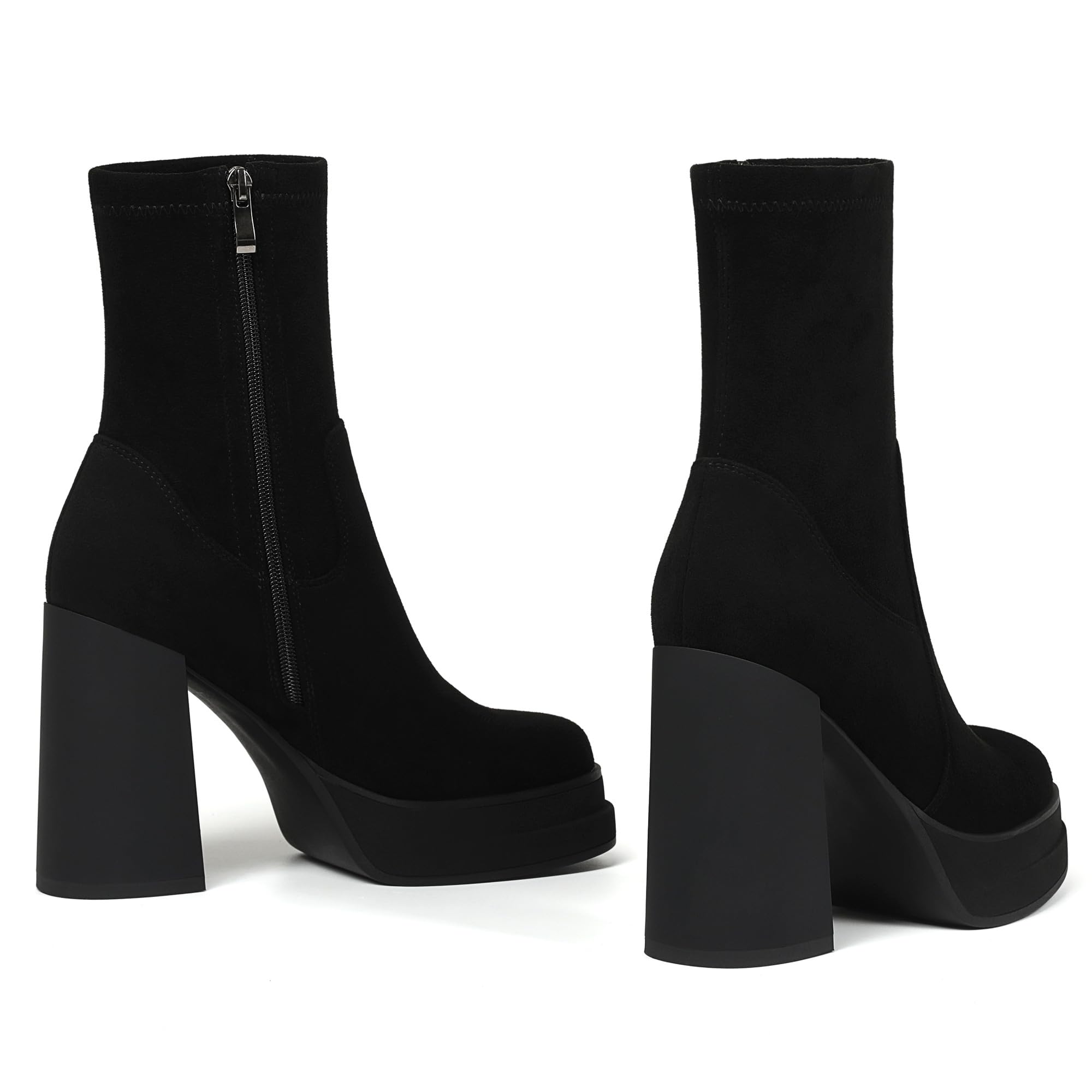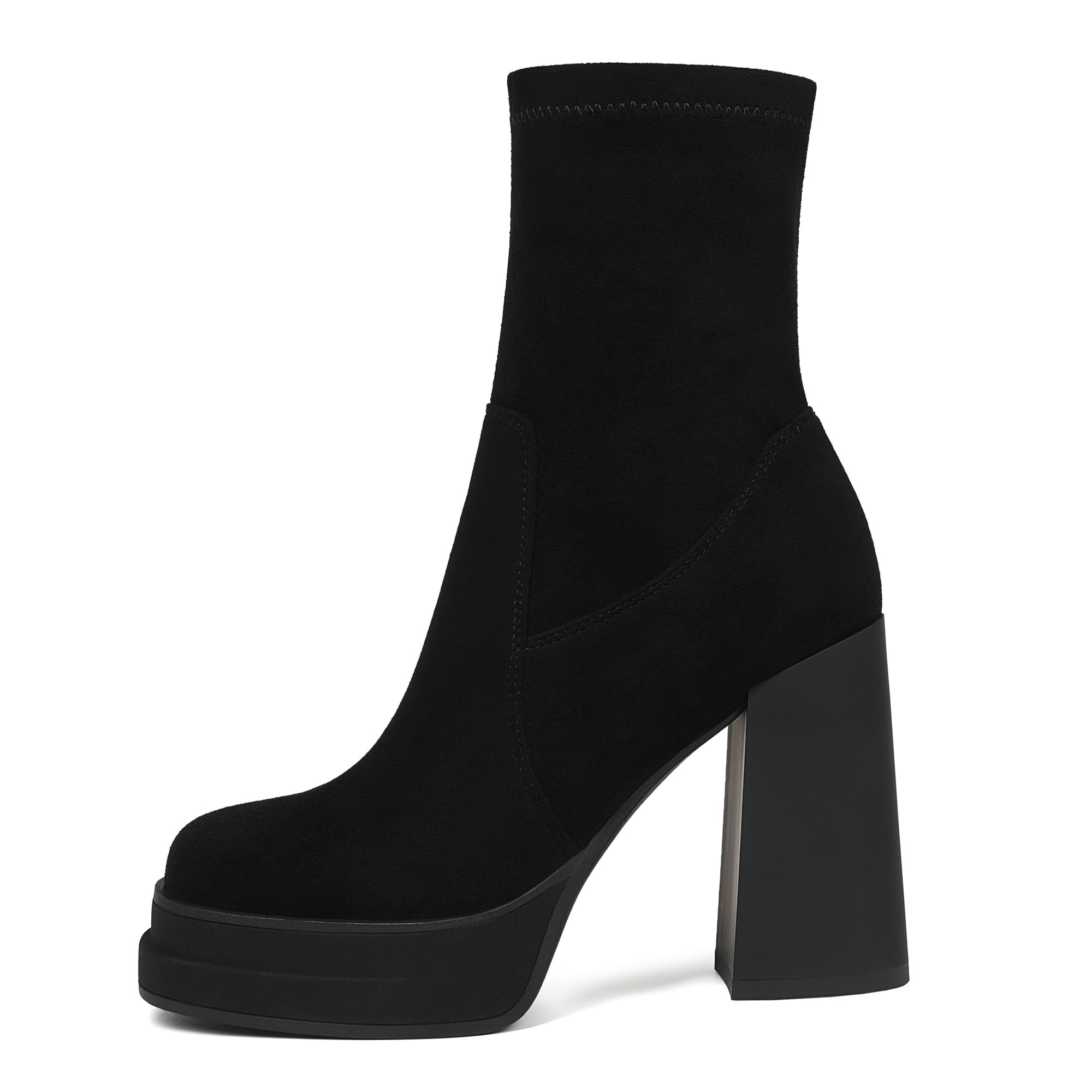 The integrated front stacked platform with square toe and high block heel combination makes your legs slimmer and straighter while allowing you to walk with ease. These ankle boots are a must-have in your wardrobe.