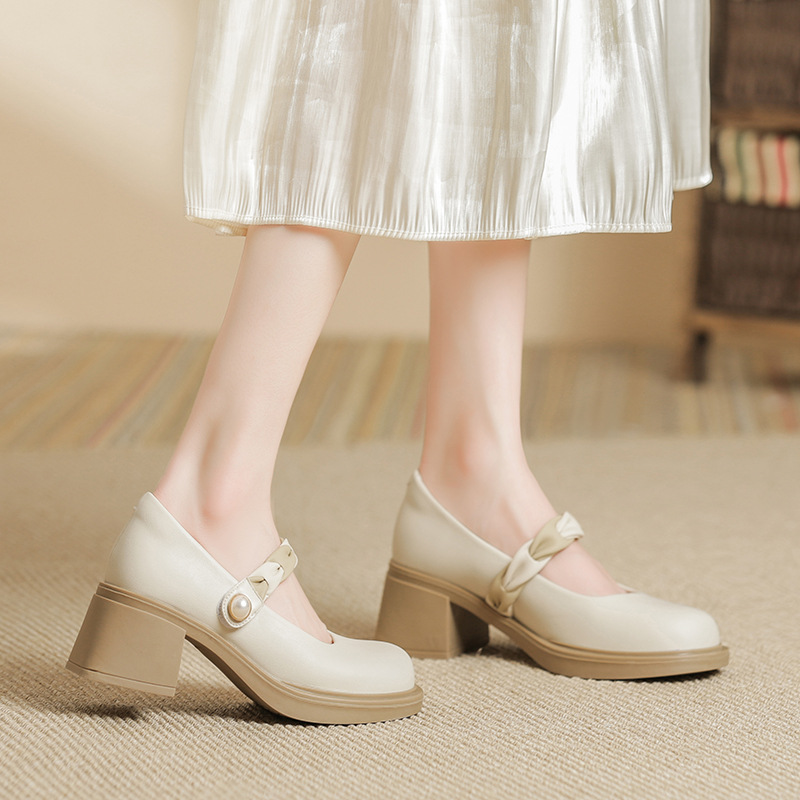 • 2024 Mary Jane Shoes Women's Spring And Autumn British Style Single Shoes With Skirts Flat-Bottomed French Shallow-Mouth Small Leather Shoes Summer