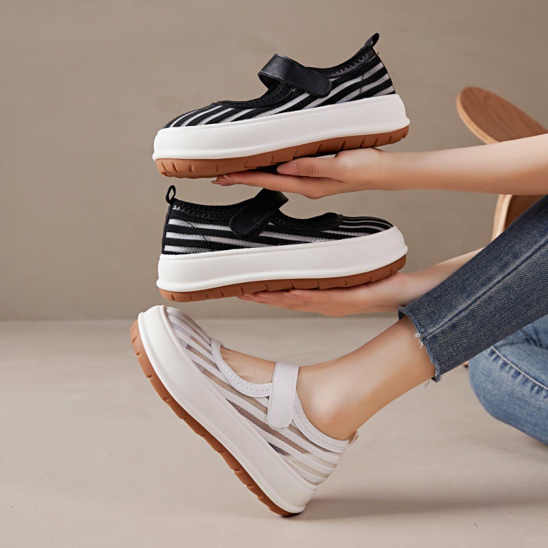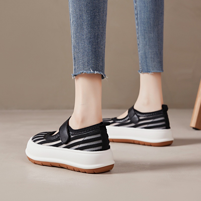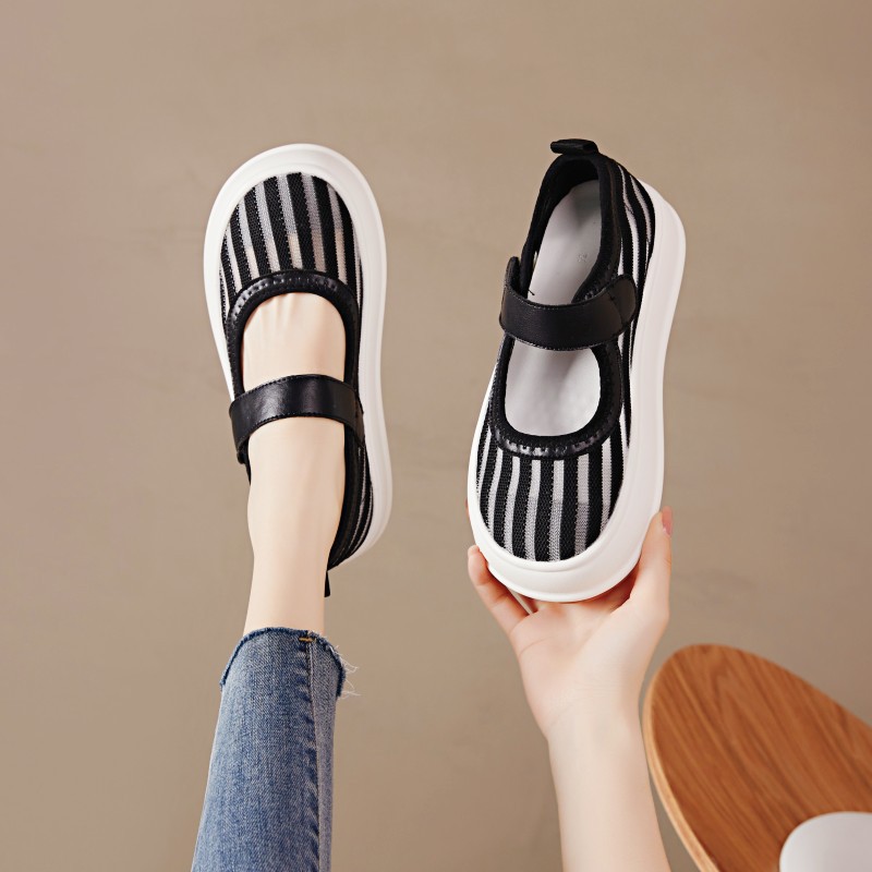 • Black Shoes For Women Mesh Breathable 2024 Summer New All-Match Velcro Perforated Air Sports Casual Shoes