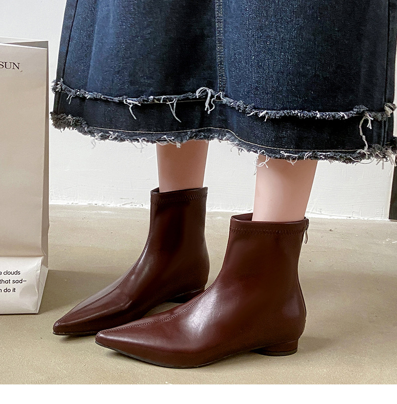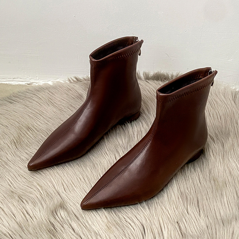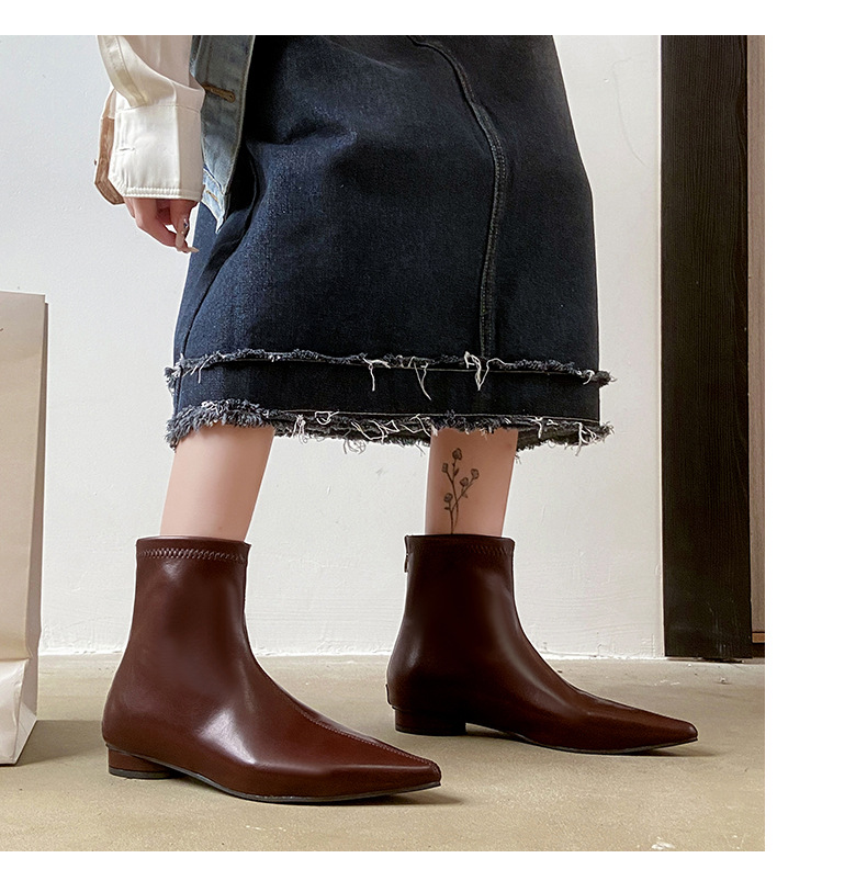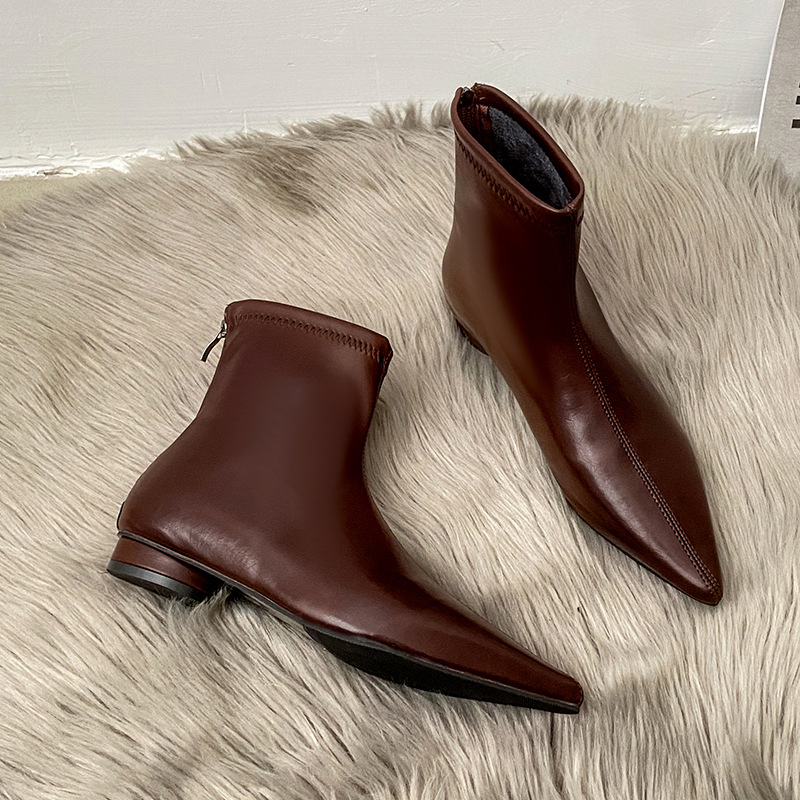 European And American Sexy Pointed Back Zipper Thick Heel Short Boots 2024 New Fashion Boots Soft Leather Skinny Boots Women's Shoes