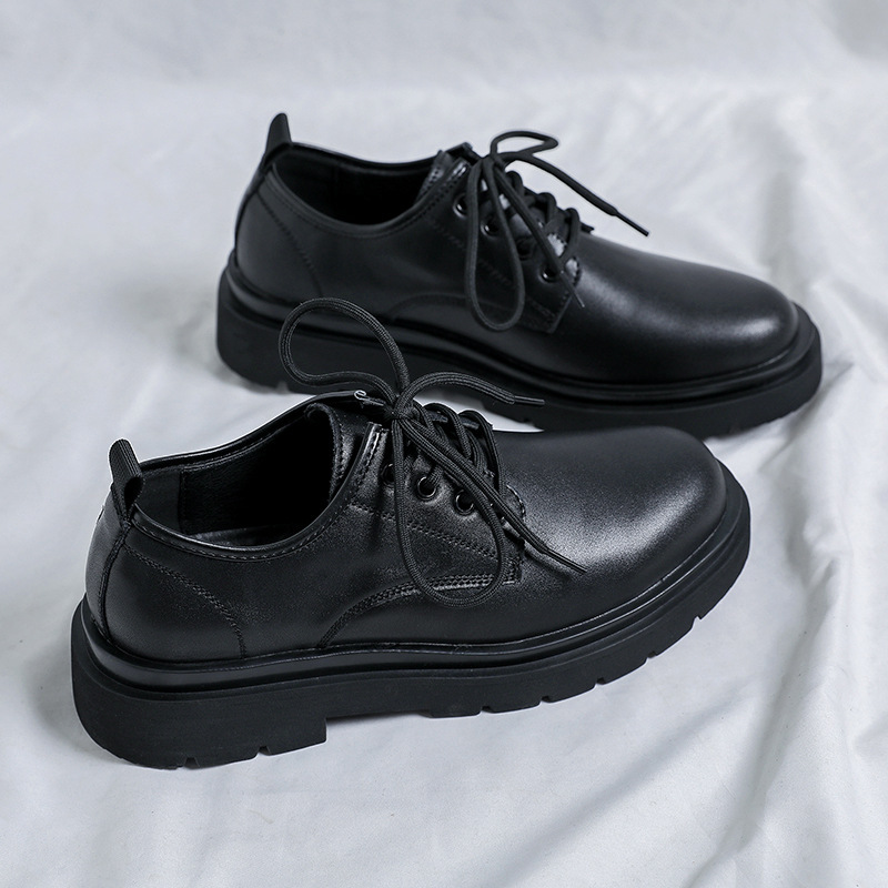 • 2024 New Style Small Leather Shoes For Men British Style Large Size Men's Shoes Black Double Laces Ancient Style Trendy Shoes