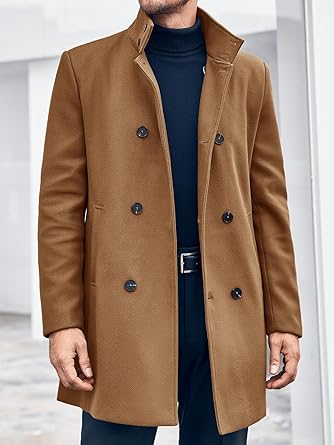 Men's mid length windbreaker winter double breasted pea coat casual business warm coat