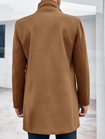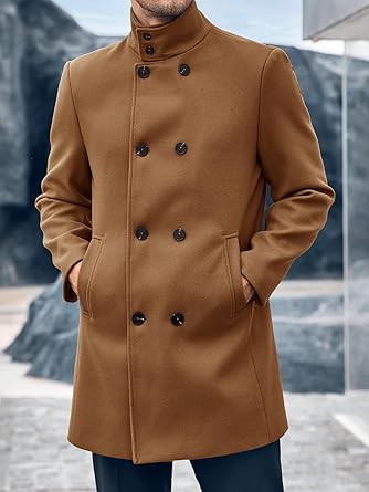 • Men's mid length windbreaker winter double breasted pea coat casual business warm coat