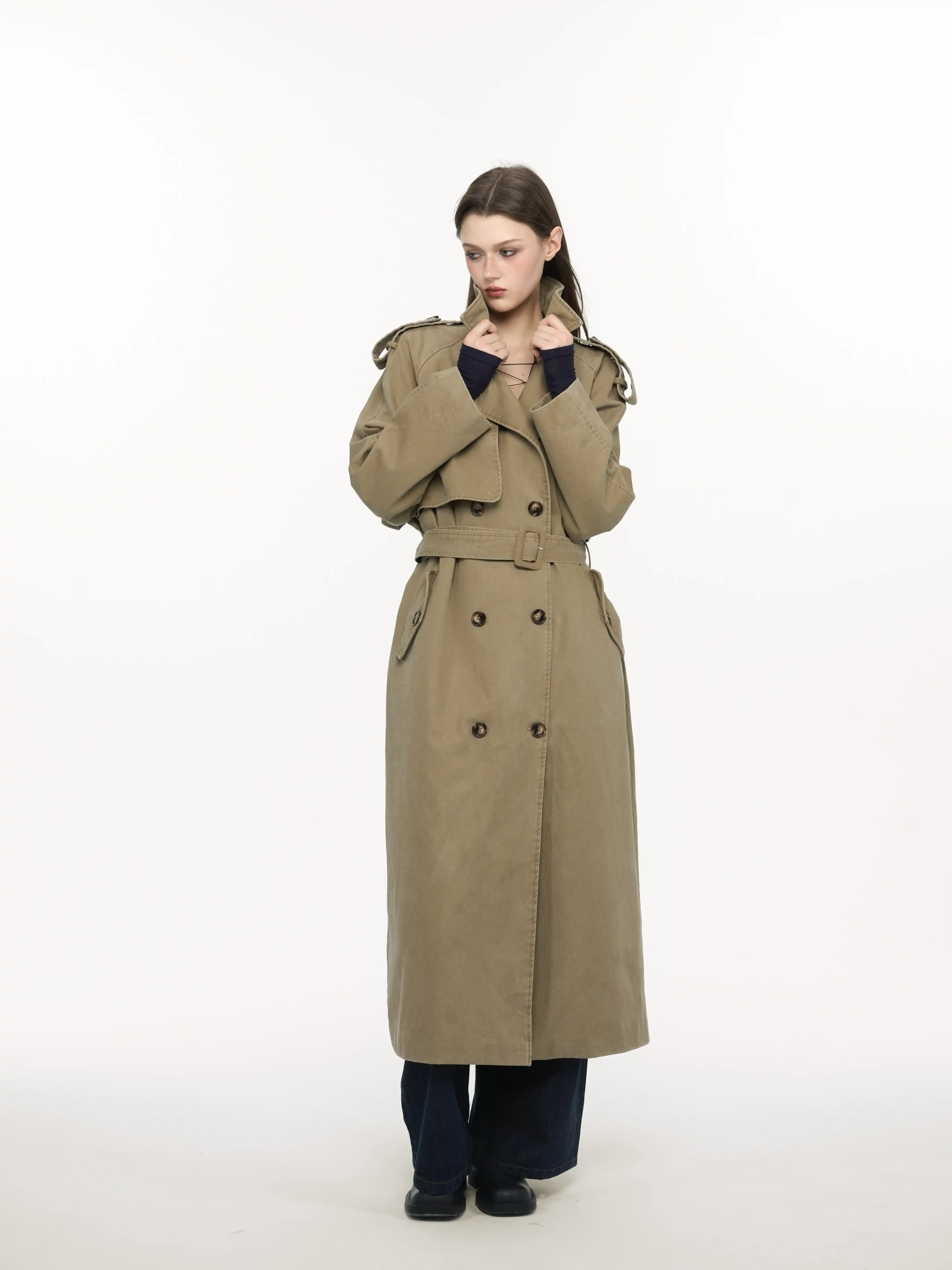 / New Long Winter Trench Coat - Khaki Premium Women's Outerwear