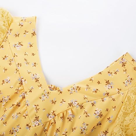 2024 Women's Summer Short Puff Sleeve V-Neck A-Line Swing Dress 1950s Vintage Cocktail Dress (With Belt)