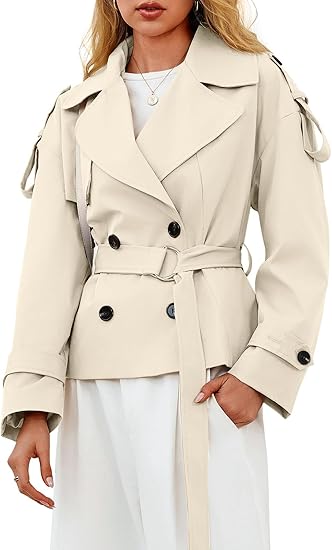 Women S Short Trench Coat Casual Double Breasted Short Jacket Autumn Fashion Outerwear With Belt