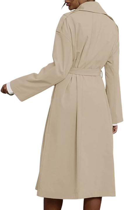 Women's Double Breasted Long Trench Coat Lapel Mid Length Jacket with Belt Coat
