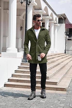 • Men's Windbreaker Single Breasted Casual Wide Angle Collar Windbreaker Jacket Long Classic Business Coat